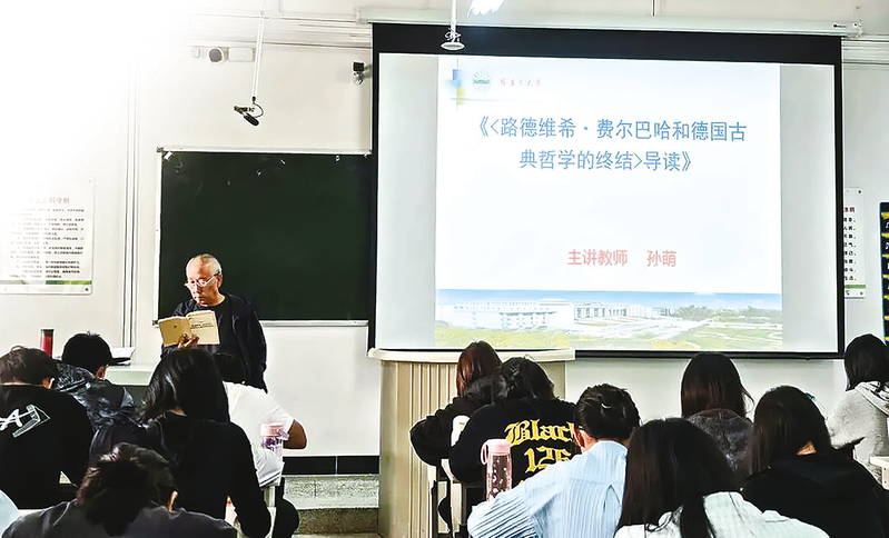 课堂之外,孙萌喜欢和学生谈天说地,还利用闲暇带领大家一起读马列原著。提起这位亦师亦友的老先生,马克思主义理论专业的本科生陈旭不禁竖起了大拇指,“孙老师无论做什么都很认真,而且总是信心十足、活力满满,从不拖延。他身上的很多闪光点,都值得我们年轻一代学习!”