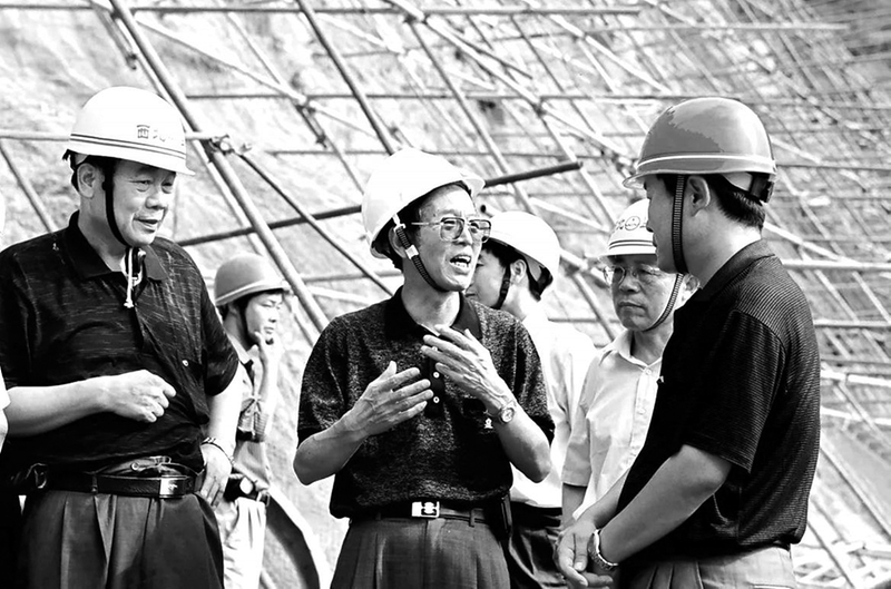 马洪琪(中)在水电站施工现场(据中国工程院官网)