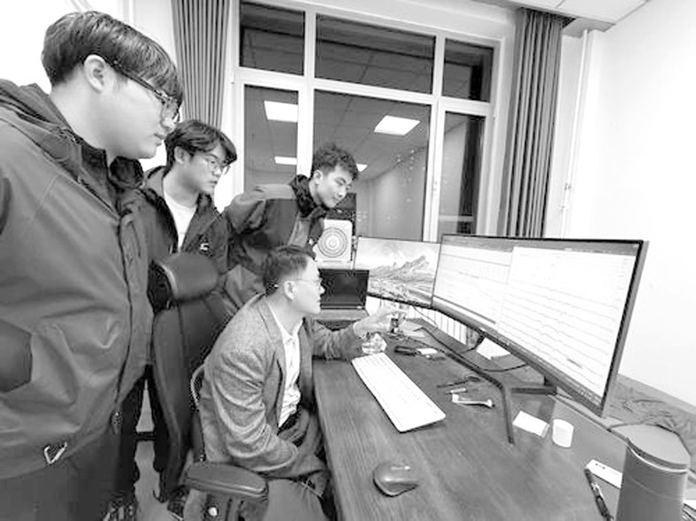 徐鹏(右一)和学生讨论轨道变形预警技术