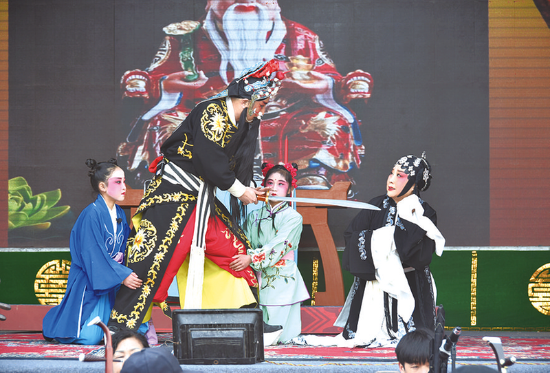 临近中午,梆子一敲、板胡一响,由三原教育剧社带来的秦腔《火焰驹》一经启幕,便吸引了现场无数戏迷的目光——这是剧社在“关中第一大集”献演的第10天,台上演员以真挚情感演绎戏中人物的喜怒哀乐,台下观众用阵阵掌声表达他们对秦腔艺术的热爱和对演职人员的肯定。